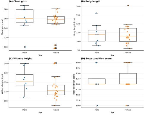 Mangun M, Duma Y, Malewa AD, Indriani I, Tanari M, Damry D. 2024. Body weight, body condition score, and morphometrics of Donggala cattle in Sigi Regency, Central Sulawesi, Indonesia. IOP Conference Series: Earth and Environmental Science. 1341(1); 012017. https://doi.org/10.1088/1755-1315/1341/1/012017